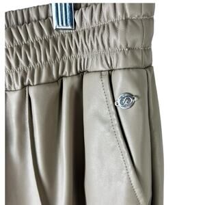 Calia Faux Leather Straight Leg Pant Pull On Elastic Waist Pockets Tan sz L