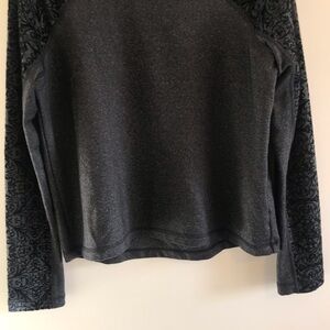 Features: Gray exercise sweat wicking Sweatshirt, velvet textured sleeves, long sleeves, regular length, limited edition.