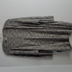 Calia open front dolman cardigan sweater. Size Medium. 2 pockets. 3/4 sleeves. Cotton & rayon, Shoulder to hem 31". Dark gray & white marled pattern. Easy wear.