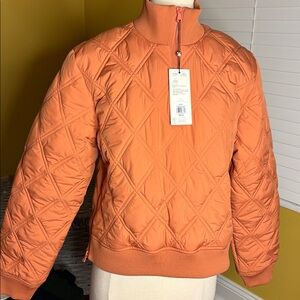 Apricot quilted pullover with half-zip. Water-repellent and wind-resistant yet warm with quilting and filling. Zipper at hips and beautiful designed. Ideal for layering. Color screams fall. New with tags.
