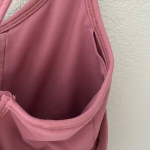 Racerback tank top with built in sports bra. Options for removable padding, does not come with pads. Beautiful rosy pink color with micro stripe. In excellent condition