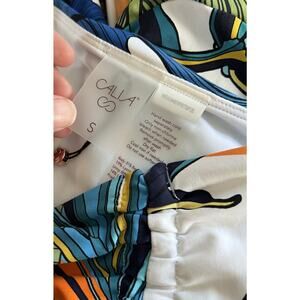 Calia Ruched Front Rashguard And Adjustable Side Bottom Set NWT Small Tropical