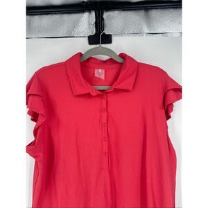 Calia Women's Apricot Pink Aura Honeycomb Flutter Sleeve Golf Polo Shirt Size XL