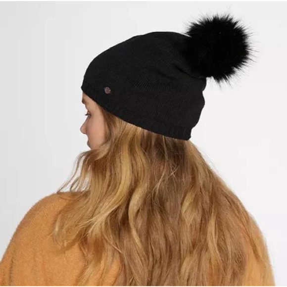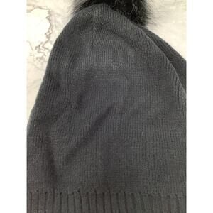 Calia Womens Black Slouch Faux Fur Pom Knit Beanie Hat Cozy Casual Winter L25-20