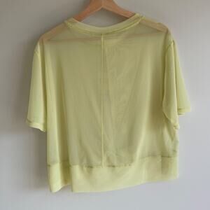 Calia Womens Boxy Crop Tee Sheer Mesh Activewear Top Size L Yellow Twist Nwt