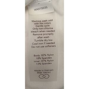 The Calia Women's Energize Exercise Dress in white is a stylish and functional piece perfect for travel, casual occasions, or workouts. This sleeveless dress features a scoop neckline and is made from a blend of nylon and spandex for a lightweight and stretchy feel. It also includes removable pads, a built-in bra, and pockets for added convenience. The Calia dress is designed for comfort and performance, making it a versatile choice for active women looking for a one-piece activewear option. Pit to pit is 16 inches. Top of shoulder to bottom is 32 inches.