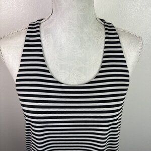 Calia Women's M Racerback Chiffon Lined Tank B&W Striped EUC