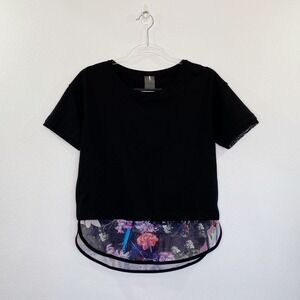 Calia by Carie Underwood Flow T-Shirt Sz XS Black Short Sleeve Workout Sheer Hem