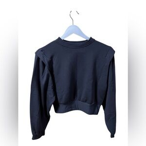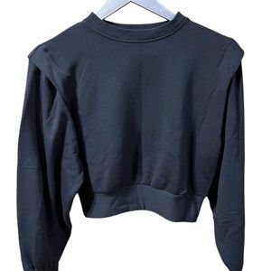 Never worn, excellent condition, and flawless. This stylish black cropped sweatshirt is perfect for casual wear or athleisure looks. Soft fabric, classic crew neckline, and a flattering cropped fit. Approximate measurements: Length 16.5”, P2P 18.5”, Sleeve 22”.