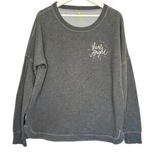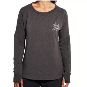 CALIA by Carrie Underwood gray long sleeve drop shoulder fleece lined shine bright sweatshirt with thumbholes.