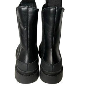 Crafted from durable leather, these black Chelsea boots feature a chunky sole and elastic gore for comfort and easy wear. Ideal for stylish, functional footwear.