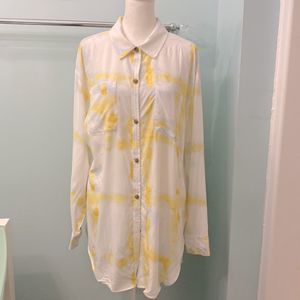 New! Calia by Carrie Underwood Watercolor Yellow Swim Coverup Utility Shirt