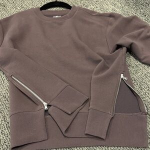 Pullover with zipper on sides. One dark spot at bottom as shown in photo.