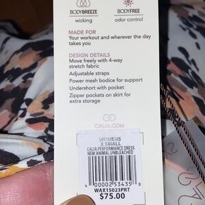 Calia women’s performance dress in new animal, shorts underneath, size XS, NWT