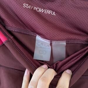 Has the two toned colors. High waist. Size xlarge. No flaws. Cropped fit