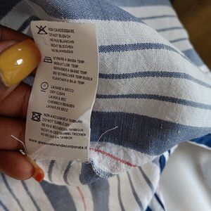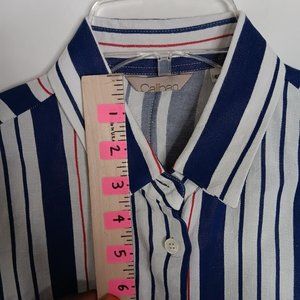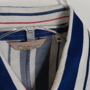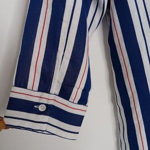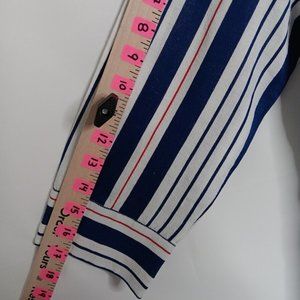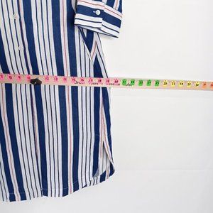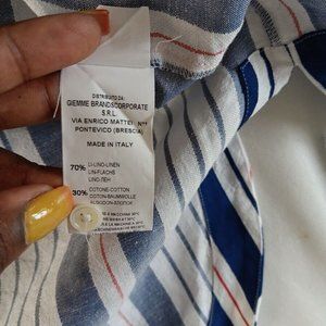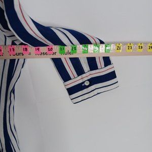 Caliban Made In Italy Shirt Dress size 40 Linen full button-Up striped Navy White Red