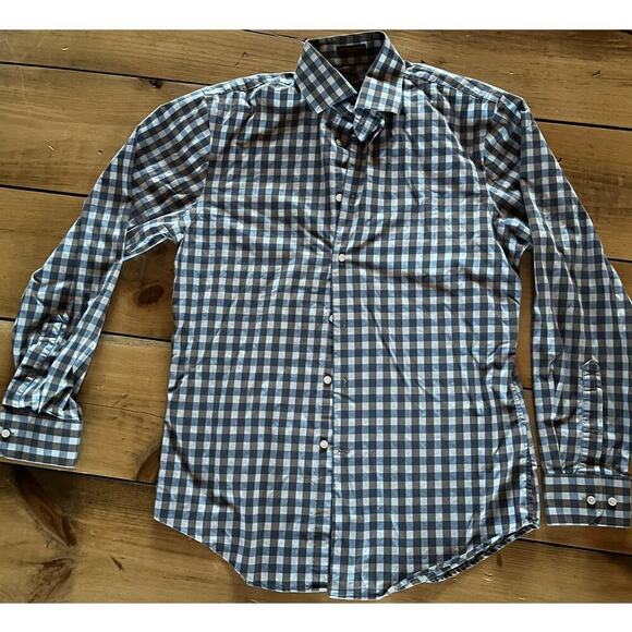 Calibrate Men's Non-Iron Button Down Plaid Shirt. Trim Fit. Blue.Size 15 (32-33)