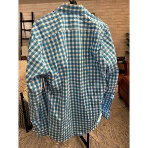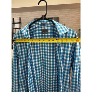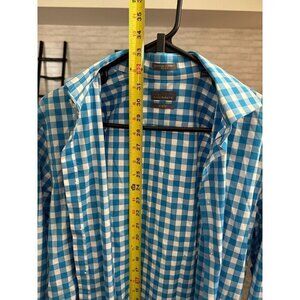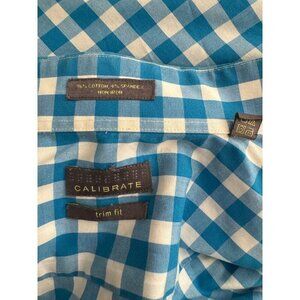 Calibrate White/Blue Plaid Trim Fit Long Sleeve Button Down Shirt Size 15.5