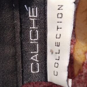 Gorgeous print in reds gold orange and black doesn't have a size but is 32 inches long around 16 inches at shoulder
