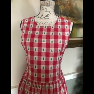 Rare Vintage Calico Collectibles Peppermint Christmas Tree Dress with Pockets. Adjustable tie in back.