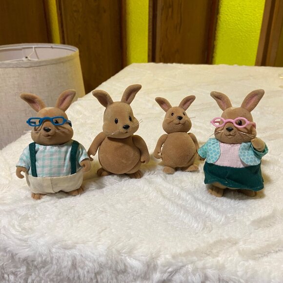Calico Critters Lil L'il Woodzeez COTTONBALL Bunny Family Lot of 4