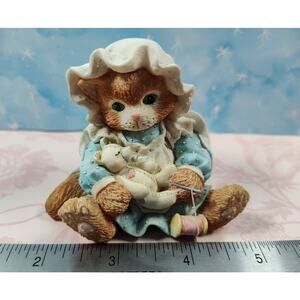 It is from Enesco and is a Calico Kitten designed by Patricia Hillman. The piece's name is You Make it All Better. She has her little teddy bear, needle and thread. It is #102202 and is dated 1994. Super cute for you or your favorite cat lover! There is some residue on the bottom from the price tag - we worked on it for a bit but didn't want to remove the ID numbers.