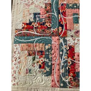Beautiful Quilted table runner or wall hanging, precision piecing Appliqué and intricate Quilted Embroidery. 13” X 25”. double layer cotton batting for heat protection. Perfect all year long. Double stitching on edge to prevent curling. if your going to use it as a wall hanging let me know and I will add a sleeve, no cost. Great gift. Gentle Machine wash and dry . Made in a pet and smoke free home. The Quilted Grandma will keep you in stitches. Be sure to add me to your favorites list!
