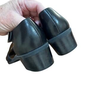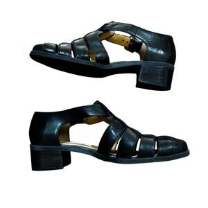 Calico low heel black leather sandals adjustable buckle classic casual 6M 1980's