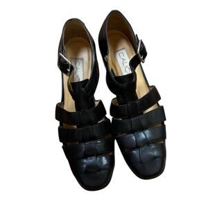Vintage Calico brand size 6M low heel black leather sandals - these have thick straps and adjustable buckles. Block heel is classic 1980's - these work for business or casual outfits that need a laid back Boho step! In good vintage condition - light overall wear - no damage or flaws - very cute!