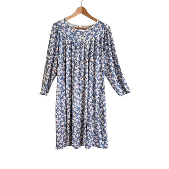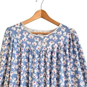 Calida Soft Cotton Nightgown Size Large Long Sleeve Blue Floral