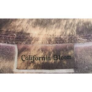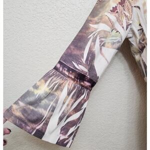 California Bloom Burgundy Green Floral Print Pleated Top Large Bell Sleeves Soft