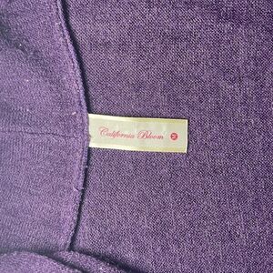 California Bloom Purple Women's Cardigan Sweater Size M Add a pop of color to your wardrobe with this California Bloom womens cardigan in a beautiful shade of purple. Perfect for layering, this size M sweater is a versatile and stylish piece for any season. The open-front design makes it easy to wear over tanks, tees, or blouses, while the lightweight fabric keeps it comfortable for all-day wear. Whether for work, casual outings, or simply relaxing at home, this cardigan adds a touch of warmth and style to any outfit. Marked sizes will vary by designer. All measurements are approximate and taken flat in inches. To ensure a good fit, please measure a piece in your closet that you would like to fit similarly. If you like the item but dont like the price, make me an offer!