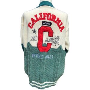 California Cheerleader Chunky Cable Knit Cardigan Women's Embroidery One Size