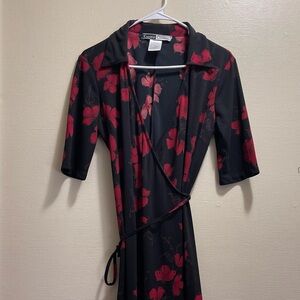 California Concepts Y2K Black Red Dark Floral Wrap Dress Whimsygoth Grunge M