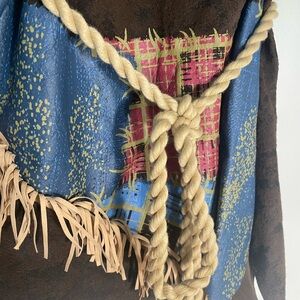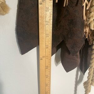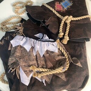 Product Description: Lurking through the corn field, this scarecrow isn’t just keeping the crows away. The Creepy Scarecrow child costume includes a distressed suede tunic top with printed patchwork at the skirt hem. The hat has jagged edges along the brim and is decorated with a rope tie. Also included are a soft faux burlap collar, and a rope belt.