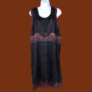 I wore this once, to a murder mystery Roaring 20's function. I loved it, it felt great on, and I got lots of compliments. I added the brown fringe and the boa, which is included. I also wore a wig, that is included, as well. The original headband is not included, Everything is in good pre-loved condition. I am 5' 4" and probably weighed between 180-200 when I wore it, and it felt great on.