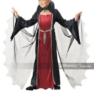 California Costume Vampire Girl Halloween Costume Red & Black Velvet Dress 8-10