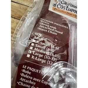 True beauty never dies. The Haunting Beauty ghost costume comes with dress with an organza overlay, hood with attached tattered effect sleeves, and chain. Dress has loops in front to hold chain. The attached hood veil can be worn down or up.