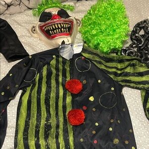 Enchanting mermaid costume with a sparkling green tail and purple top. Includes vibrant red wig. Perfect for dress-up and Halloween fun.