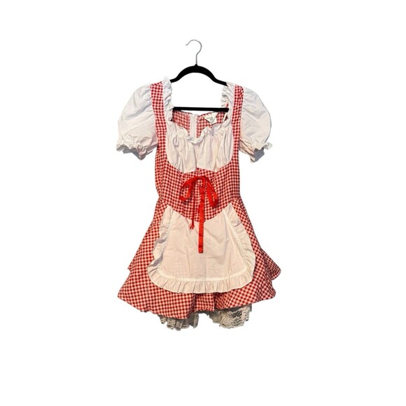 California Costumes Little Red Riding Hood Costume Teen Size Beer Wench Oktoberfest Waitress. Back zipper and lace up corset front. Square neckline. Petticoat attached underneath. Great condition.