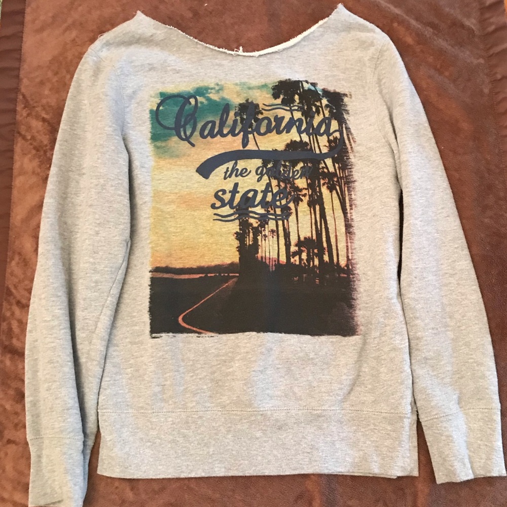 Gray California crew sweatshirt. This is actually a men’s small, fits like women’s medium. I cut the collar out to give it a more feminine open shoulder look. Vintage California design. Great condition. Only worn a couple of times.