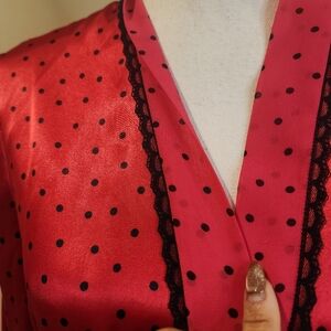 California Dinasty Red and Black Satin Polka Dot Robe with Tie Belt Size S