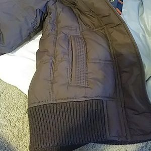 Gorgeous heavy weight waist length brown girls jacket. Detachable hood 2 front pockets fully lined. Fitted waist band and cuffs. Button and zip front. This jacket is super warm ! Barely worn excellent condition. Fits size 14 girls says juniors small. As seen in pictures my daughter wears a 16 girls or adult small