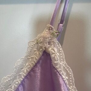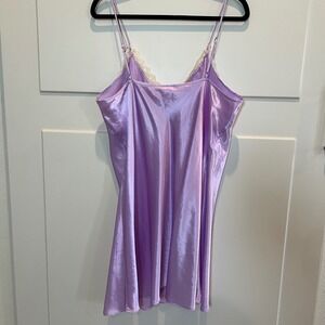 California Dynasty XL Lavender Purple Lace Trim Satin Lingerie Slip Vtg