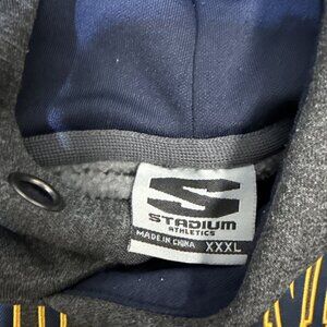 The California Golden Bears Hoodie in size 3XL is a gray pullover sweatshirt made by Stadium Athletics. This officially licensed NCAA merchandise is perfect for male fans of the California Golden Bears football team. Made in China, this sweatshirt is ideal for showing support during the regular season games. With the iconic team logo and colors, this hoodie is a must-have for any fan looking to stay warm and stylish while cheering on their favorite team on game day.
