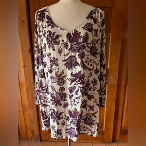 California Gypsy-Vintage Style Floral Cream/Purple Tunic