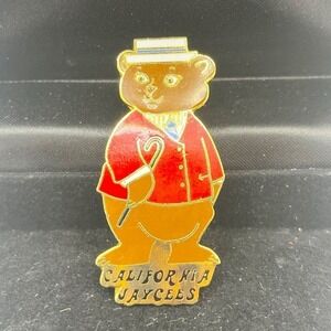 California Jaycees Senator Papa Bear 1980 Top Hat Cane Red Suit Lapel Pin 2”