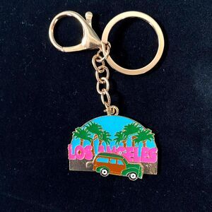 1 Gold Tone "Los Angeles", Car, Palm Trees Keychain with Lobster Clasp