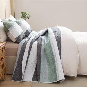 🧿STYLISH STRIPE DESIGN: Enhance your room with Litanika's quilt featuring classic Sage Green stripes. This design blends tradition with modernity, adding elegance and a crisp look to your decor