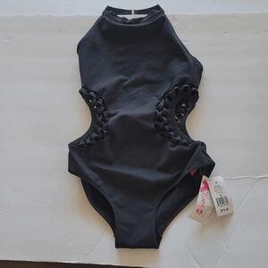 California Kisses black one piece open sides swimwear juniors size M please note that fits very slim more like XS and S